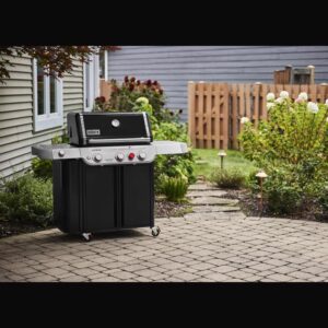 The 3 burner, stainless steel Genesis S-335 with side burner, delivers legendary Weber quality, performance and durability in a grill you can rely on to make outdoor cooking for family and friends easy and enjoyable. The PureBlu burner system sets this grill apart from the pack-featuring unique, tapered burner tubes that generate consistent pressure and flames and deliver even heat across the grilling surface. Flames are directed above the raised gas ports, while food debris falls below minimizing clogging and ensuring the grill lights every time.