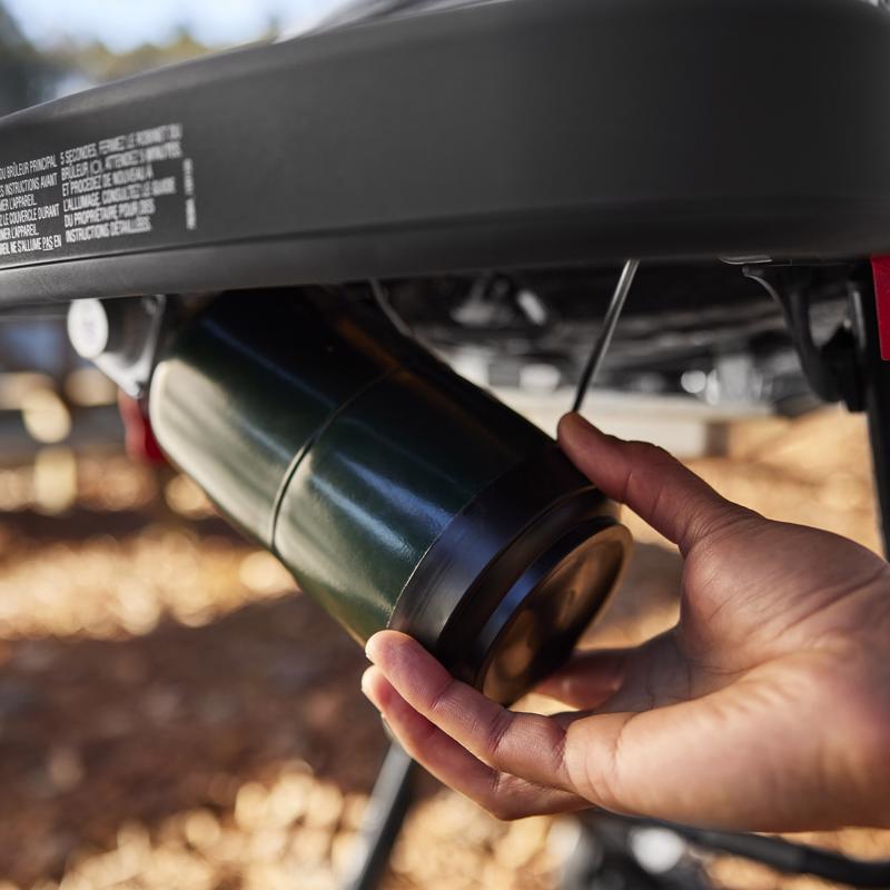 • Uses disposable 16.4 oz. LP Cylinder (sold separately) can accommodate a full-size, 20 lb. fuel tank when using an adapter hose